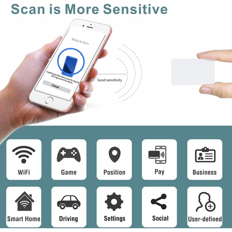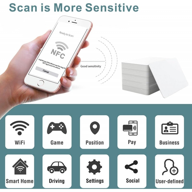 Descubra a versatilidade dos cartões NFC NTAG215 com memória de 504 bytes, compatíveis com todos os dispositivos NFC. Disponíveis em packs de 20, 30, 50 e 100 unidades e em diferentes tamanhos.