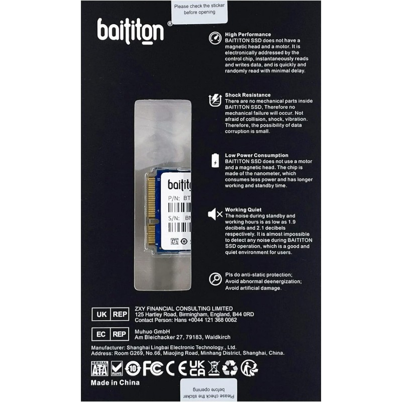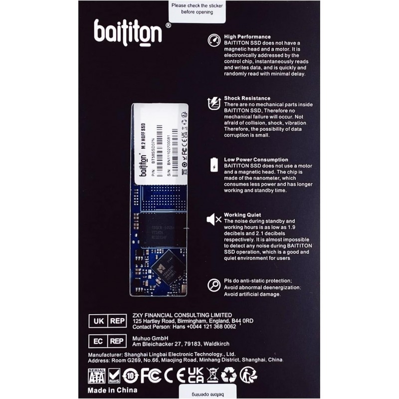 BAITITON Solid State Drive é um dispositivo de armazenamento de alto desempenho e alta confiabilidade que consiste em memórias NAND Flash não voláteis e componentes semicondutores. Esta tecnologia foi concebida para otimizar as limitações de baixo desempenho de computação das unidades de disco rígido tradicionais. Todas as peças mecânicas foram substituídas por componentes eletrónicos para evitar danos causados por choques e vibrações. A BAITITON SSD mantém a mesma interface que as unidades de disco rígido tradicionais.