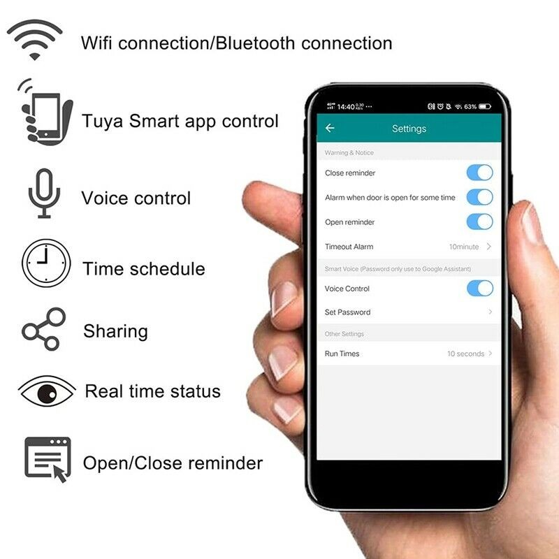 • 1 × Controlador inteligente de porta de garagem Tuya