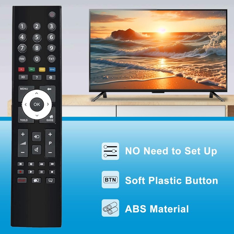 Comando remoto de substituição TP7187 TP7187R compatível com múltiplos modelos Grundig. Funciona por infravermelhos, não necessita de programação e está pronto a usar. Alcance até cerca de 10 metros. Botões claros, operação simples e design ergonómico.