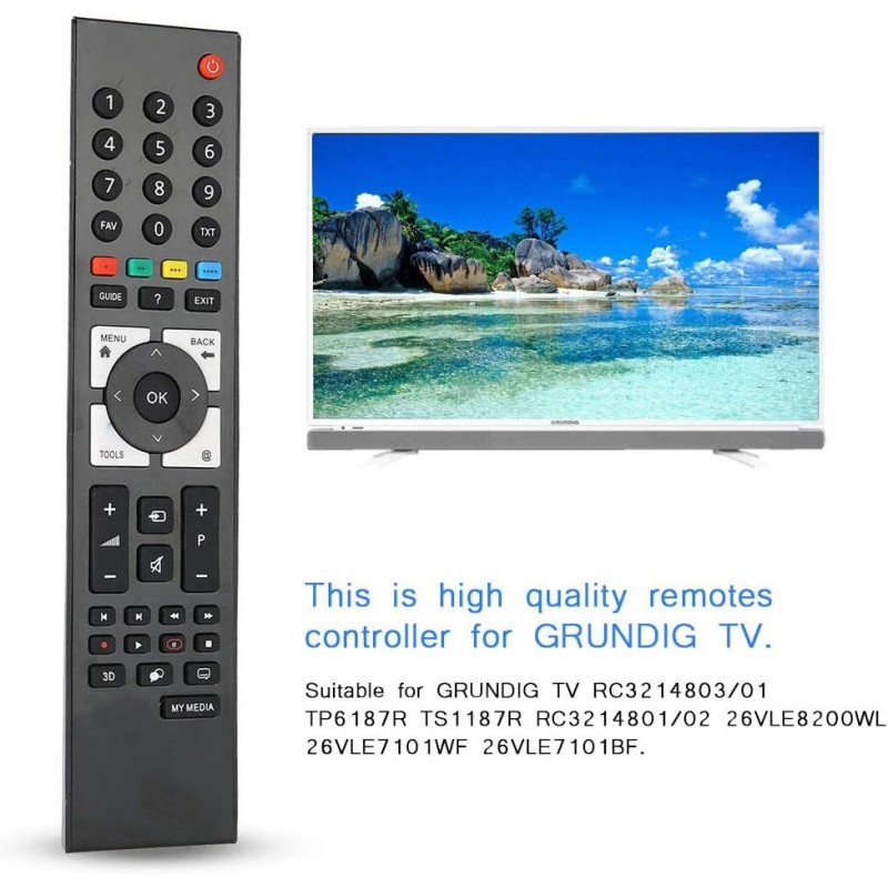 Comando remoto de substituição compatível com televisões GRUNDIG Smart TV. Fabricado em ABS, resistente e durável, com alcance superior a 8 metros. Funciona com pilhas AAA e não necessita de programação.