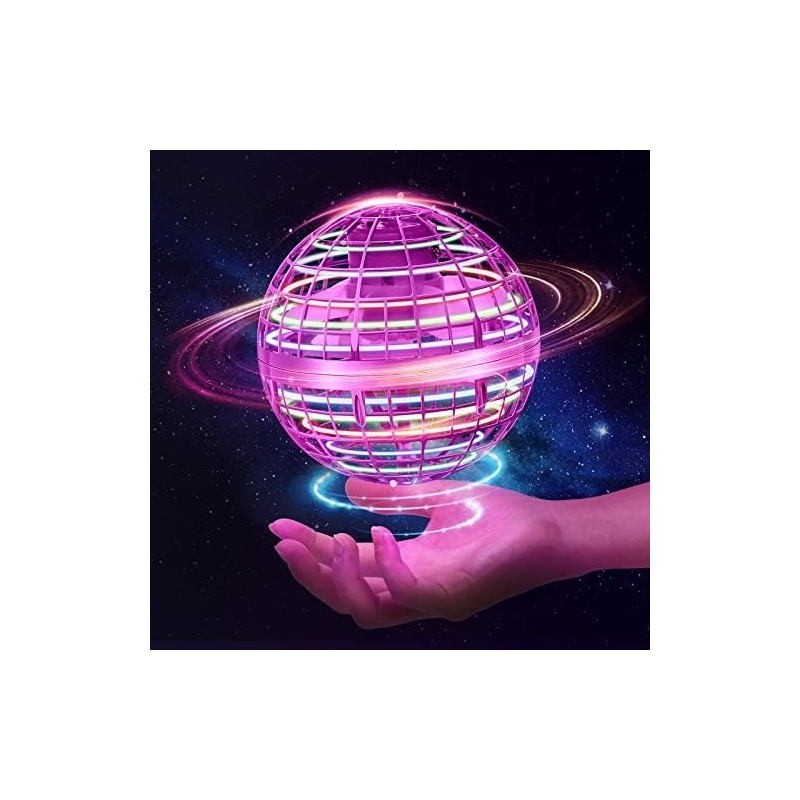 Bola voadora controlada à mão com luzes LED RGB que voa como um boomerang. Ideal para crianças, oferece diversão segura no interior e exterior. Disponível em azul, vermelho e cor-de-rosa.