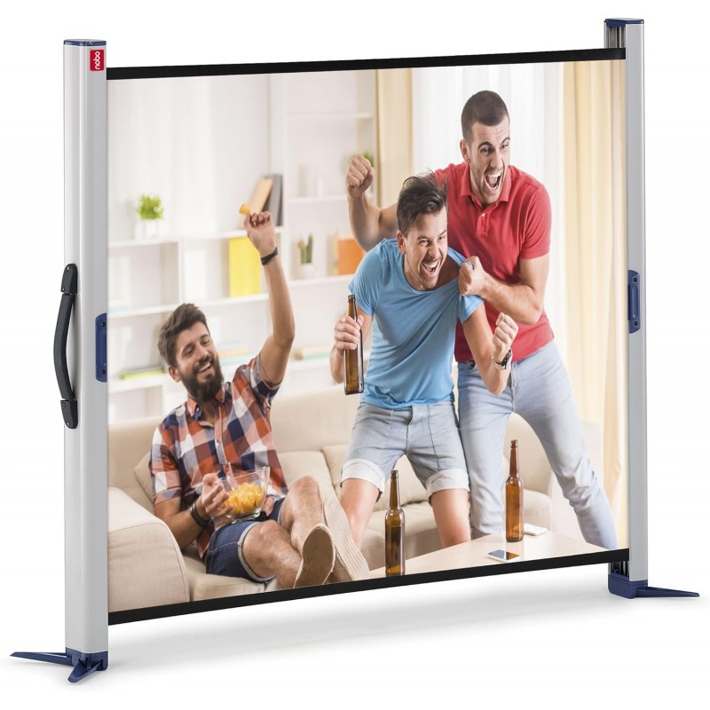 Este ecrã é perfeito para quem precisa de uma solução móvel para apresentações em escritórios, salas de aula ou para entretenimento em casa. A superfície branca mate e a borda preta aumentam o contraste, proporcionando imagens nítidas e cores vivas, tornando cada apresentação ou sessão de cinema uma experiência de alta qualidade.
