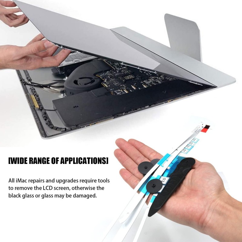 Este kit é perfeito para atualizar ou substituir o ecrã do seu iMac, garantindo que funciona tão bem como o original. A fita adesiva profissional e o manípulo fornecem a precisão necessária para uma instalação suave e segura.