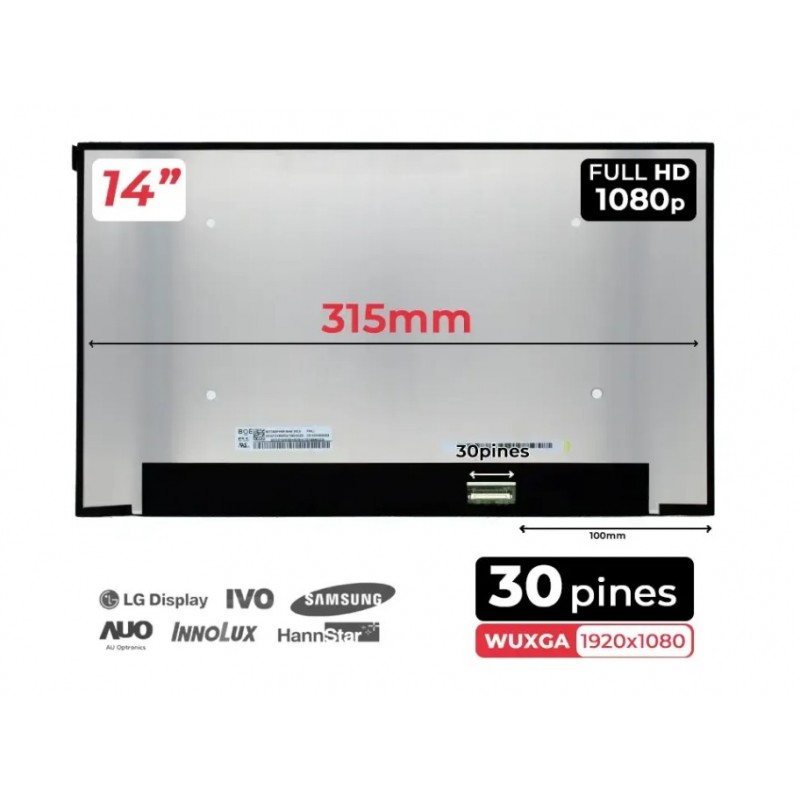 Ecrã LED de 14 polegadas para portátil, resolução WUXGA 1920x1080, conector de 30 pinos na posição inferior direita. Compatível com a referência NV140FHM-N4T.