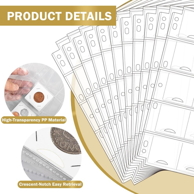 Estas folhas porta-moedas são a solução ideal para quem valoriza a organização, proteção e apresentação da sua coleção de moedas.