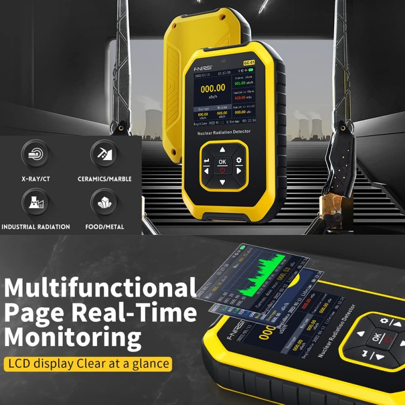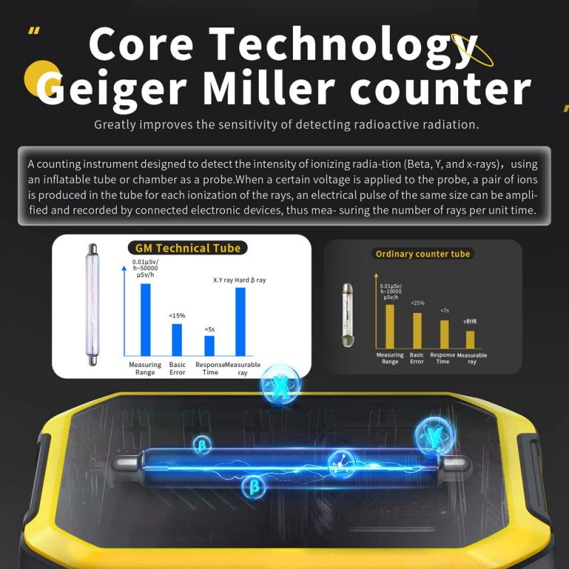 Este contador Geiger é um dispositivo de monitorização de radiação de alta precisão e sensibilidade, ideal para ambientes onde a radiação é uma preocupação. O seu ecrã LCD multifuncional apresenta valores em tempo real, acumulados e máximos, proporcionando uma monitorização detalhada. Equipado com um tubo contador Geiger-Muller de alta qualidade, este detetor consegue detetar raios X e GZRD com precisão.