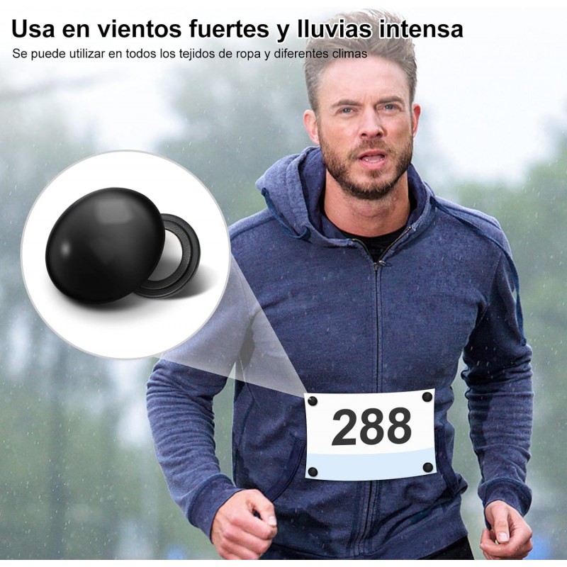 Pack de 4 pares de ímanes para fixação dorsal, ideais para corridas e ciclismo, proporcionando uma alternativa segura e confortável aos alfinetes. Leves e com forte atração magnética, garantem que o número de competição permaneça no lugar sem danificar a vestimenta.
