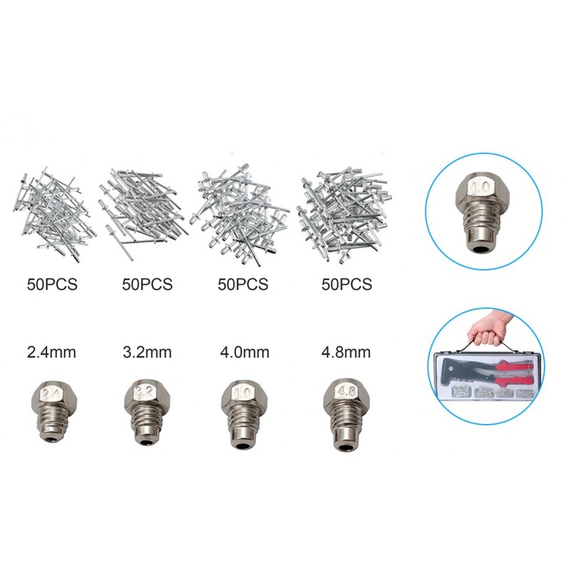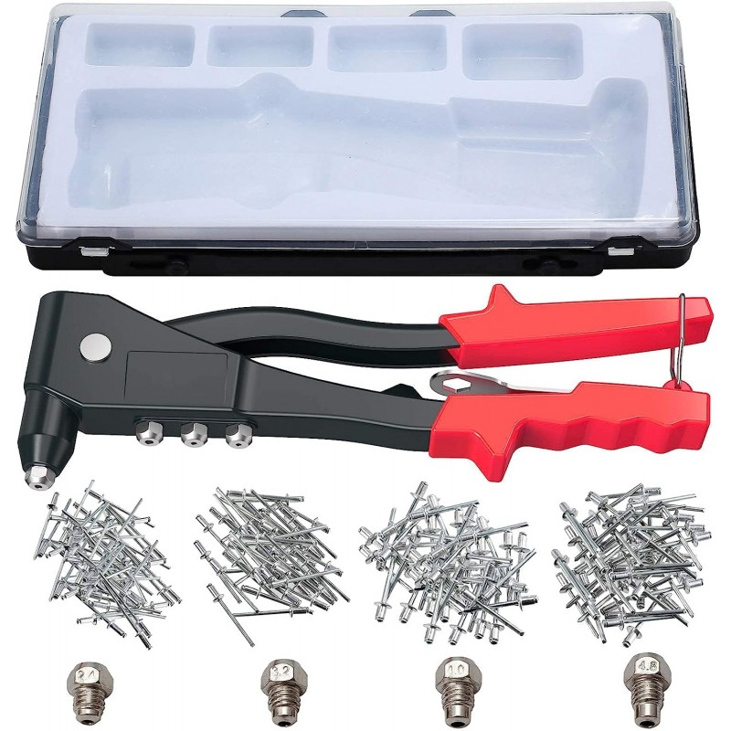 Rebitadora Manual Profissional com 200 Rebites – Ferramenta Robusta para Metal, Madeira e Plástico