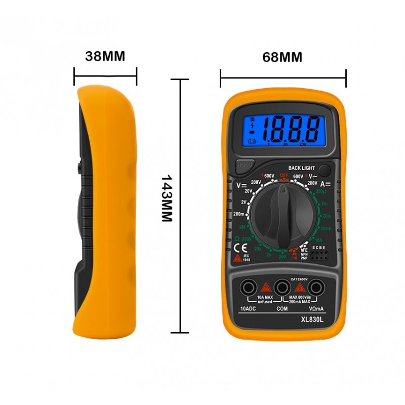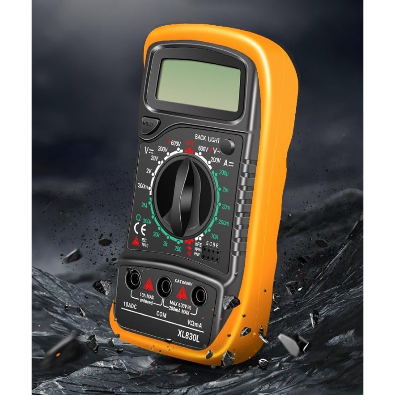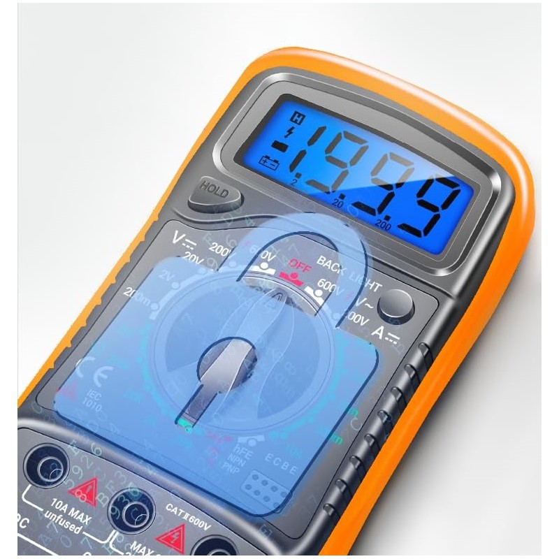 Multímetro Digital Portátil - Voltímetro com Duplo Fusível, Medição de Tensão em CA/CC/DC, Resistência, Continuidade, Frequência, com Ecrã LCD (Multímetro)