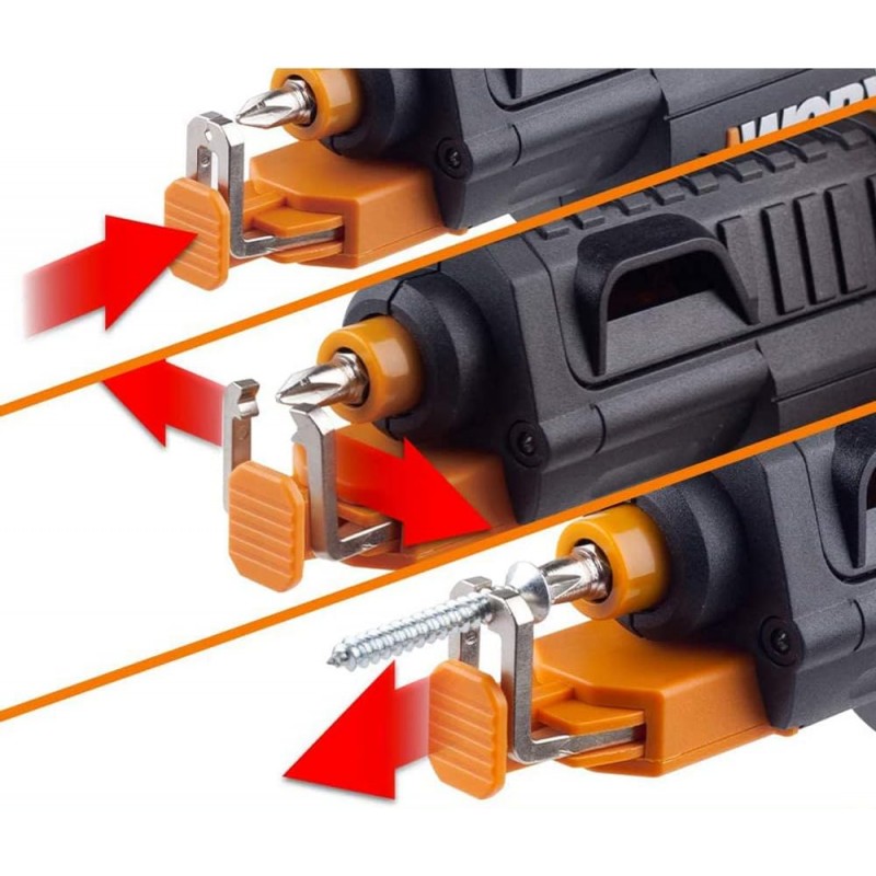 Mão Livre para Aparafusar: O sistema de suporte para parafusos permite aparafusar com apenas uma mão, tornando o trabalho muito mais ágil e confortável.