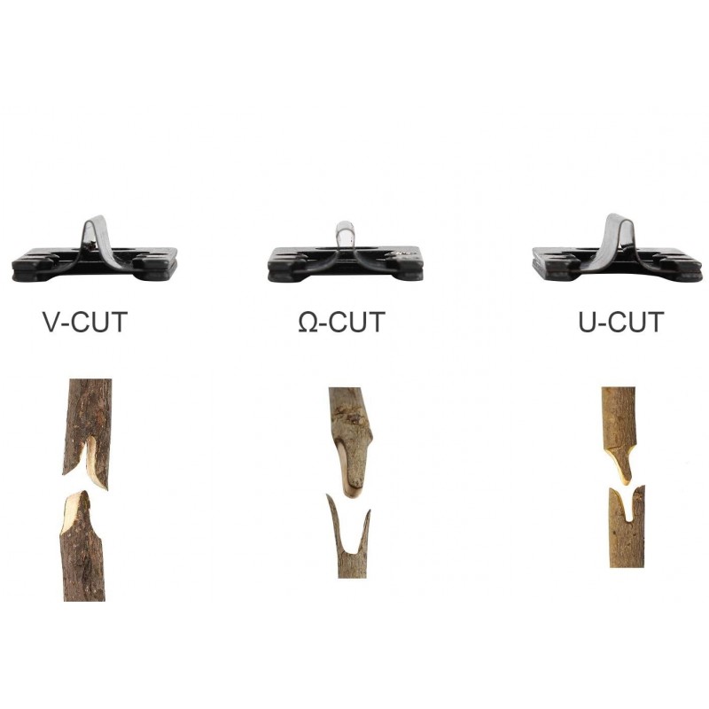 Fácil de Usar: Ideal para enxertos onde o porta-enxerto e a haste têm diâmetros similares. O sistema de encaixe perfeito facilita o processo de enxerto, eliminando a necessidade de cera ou fita adicional.