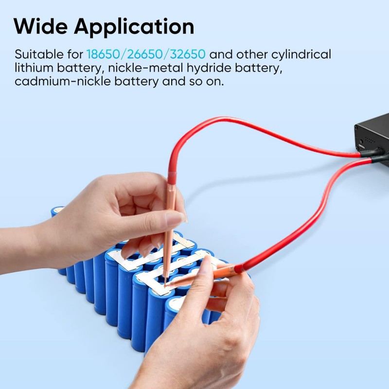 Adequado para a soldadura de baterias cilíndricas de lítio, níquel-hidrogénio e níquel-cádmio, proporciona uma soldadura estável em folhas de níquel de 0,1 a 0,2 mm de espessura (máximo de 0,25 mm).