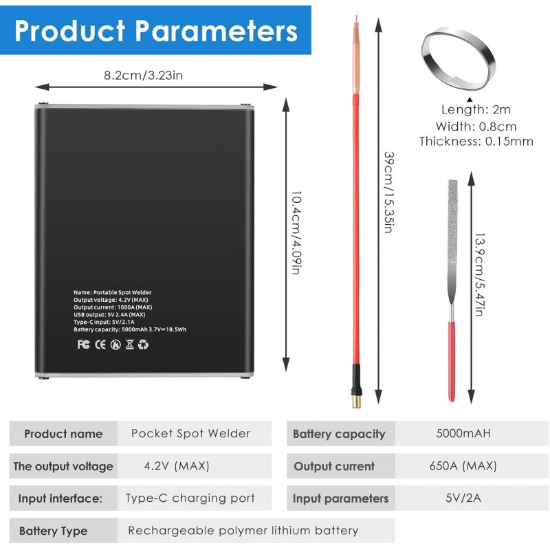 Integrado com uma bateria de lítio recarregável de 5000 mAh, este soldador por pontos garante uma operação contínua e eficiente.