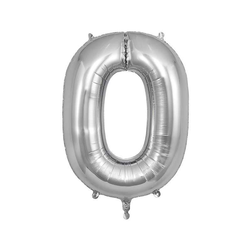 Balão Foil Número 0 de 40'' - 102cm Prateado