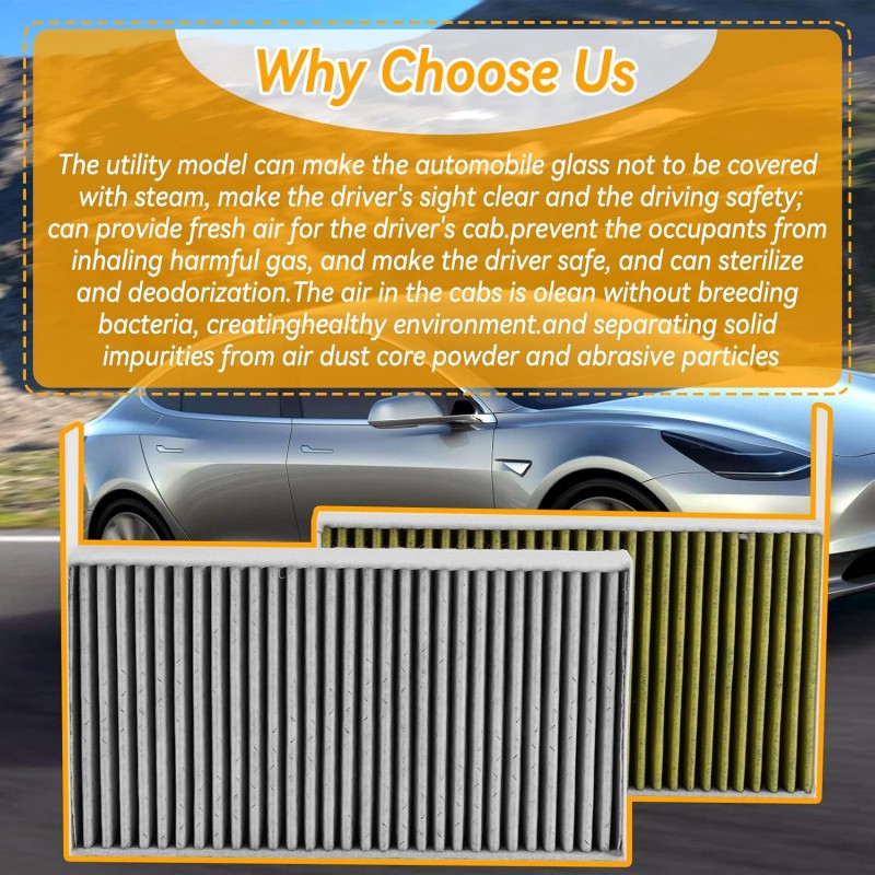 Este filtro de ar de cabine premium foi projetado para manter o interior do seu Tesla Model 3 ou Model Y limpo e livre de impurezas. Fabricado com tecido filtrante de alta qualidade e carvão ativado, remove eficazmente poeira, pólen, odores e outras partículas do ar, garantindo um ambiente mais saudável para os ocupantes do veículo.