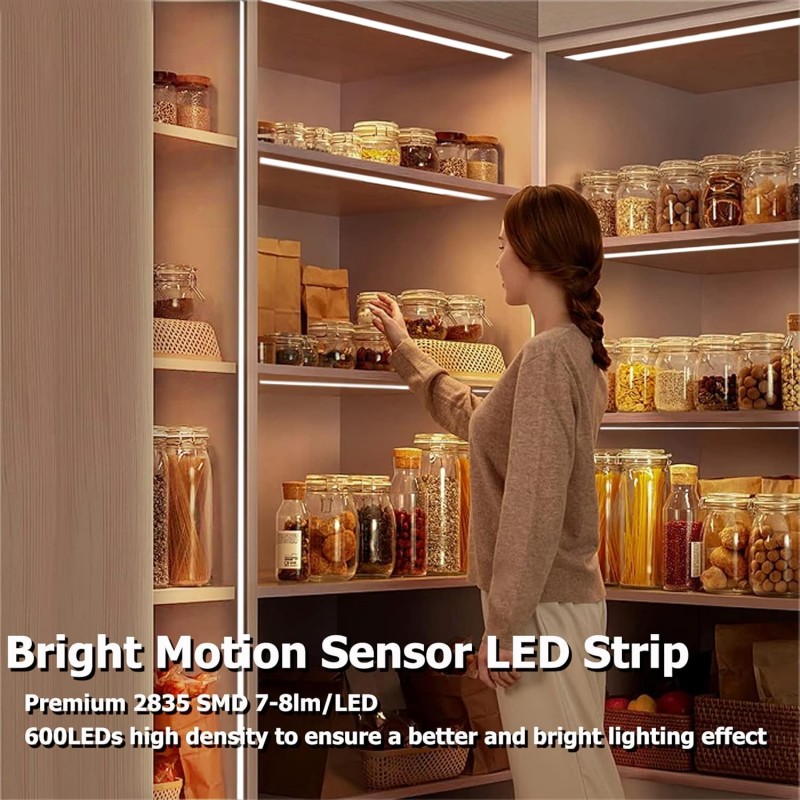 A tira LED com sensor de movimento é uma solução prática e eficiente para iluminar espaços interiores de forma automática e económica. Este kit completo inclui tudo o que precisa para instalar uma iluminação confortável, com luz branco quente (3000K) e opções de ajuste conforme a sua necessidade.
