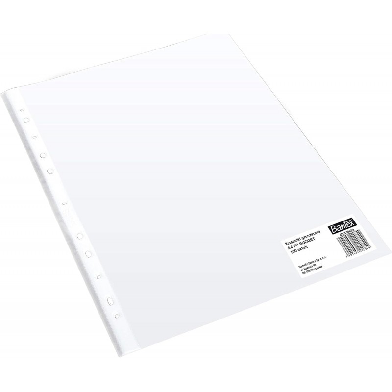 Conjunto de 100 capas transparentes A4 da Budget, ideais para proteger e organizar documentos. Feitas em polipropileno resistente, com perfuração universal.