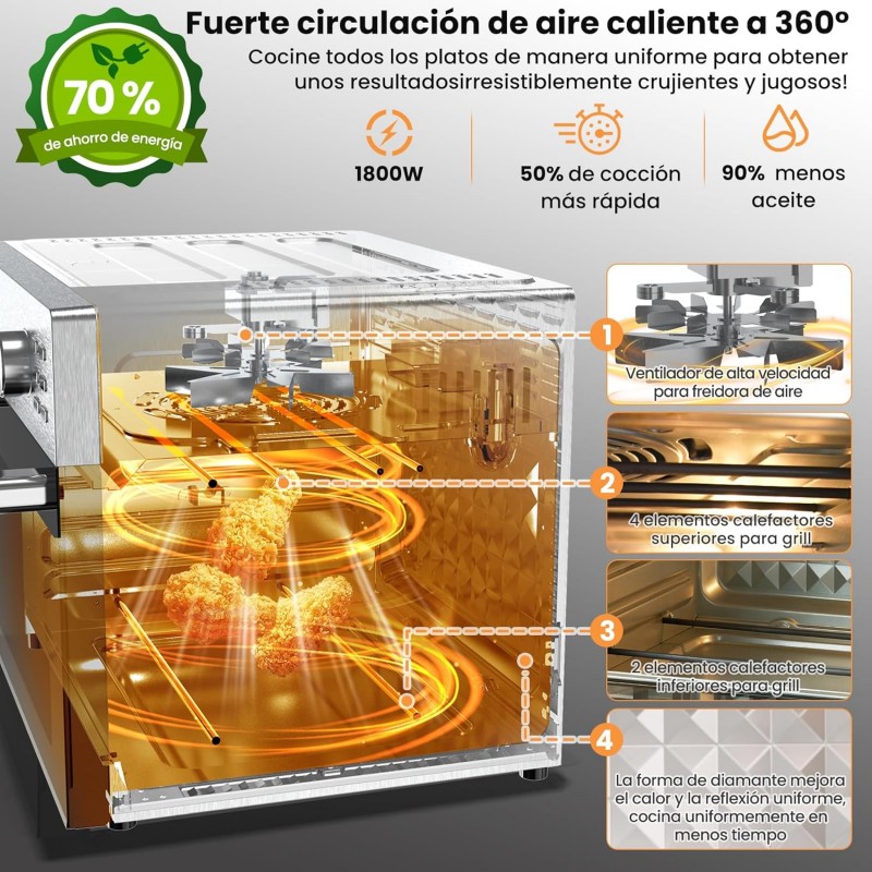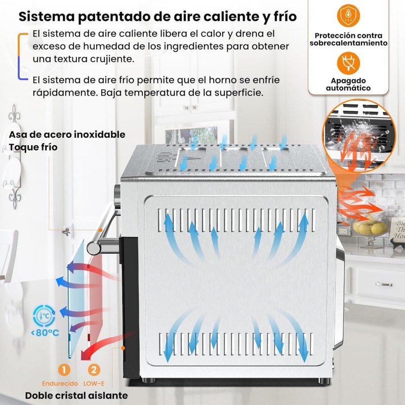 Ciclo de ar quente de 360°Sistema de vento científico, sem perda de fumo. Mantenha os alimentos crocantes e suculentos. |