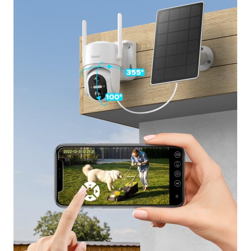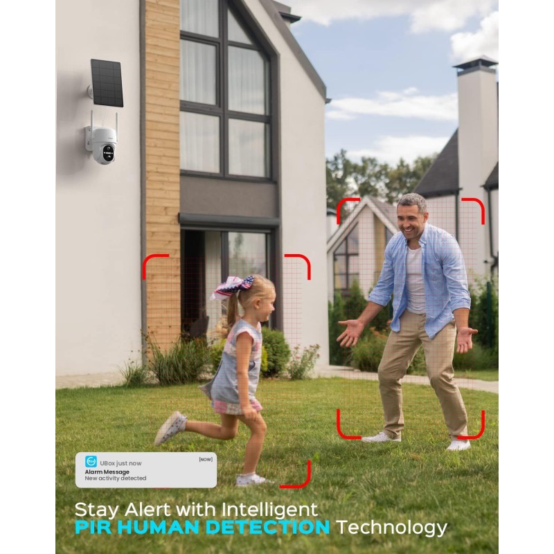 Graças à detecção de movimento PIR e algoritmos de IA, a câmara evita alarmes desnecessários causados por animais, folhas ou chuva.