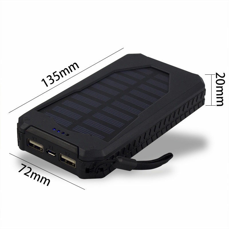 Bateria - Power Bank Carregador a energia solar e USB 20000 mAh e Led lanterna