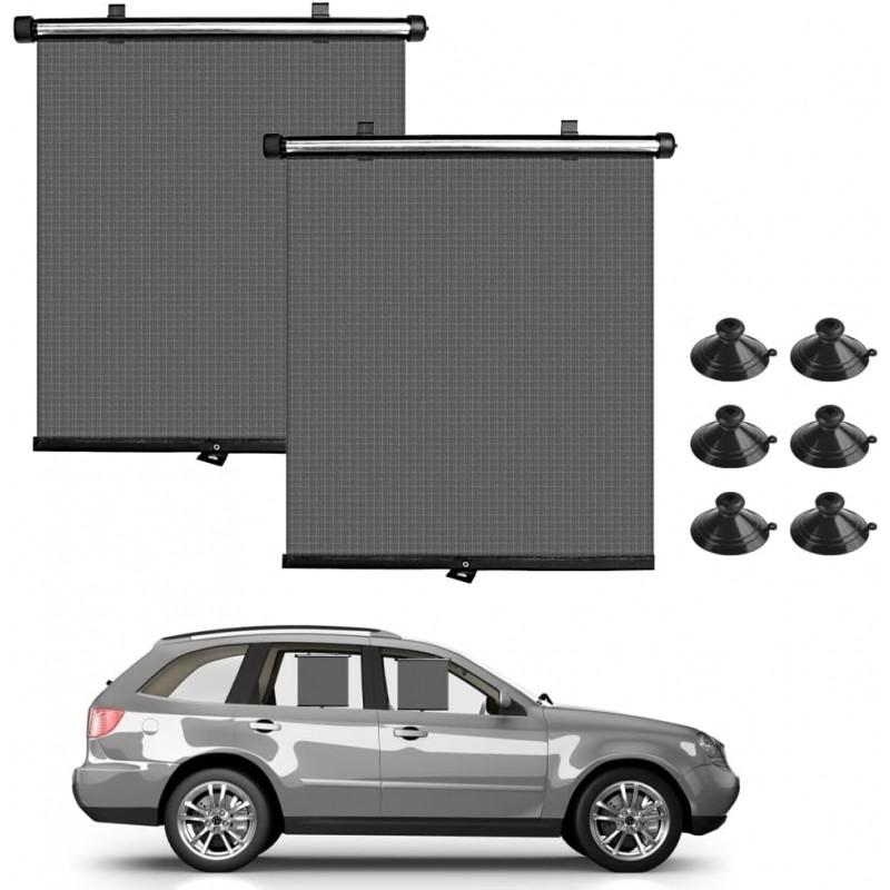 Proteja o interior do seu carro com estes guarda-sóis retráteis em malha PU de alta qualidade. Bloqueiam eficazmente os raios UV e reduzem a temperatura interior, proporcionando conforto e privacidade. Cada conjunto inclui 2 guarda-sóis e 6 ventosas para uma instalação fácil e segura.