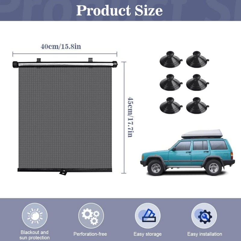 Dimensões: Cada guarda-sol tem 40 cm de comprimento e 45 cm de altura, cobrindo adequadamente as janelas do carro.