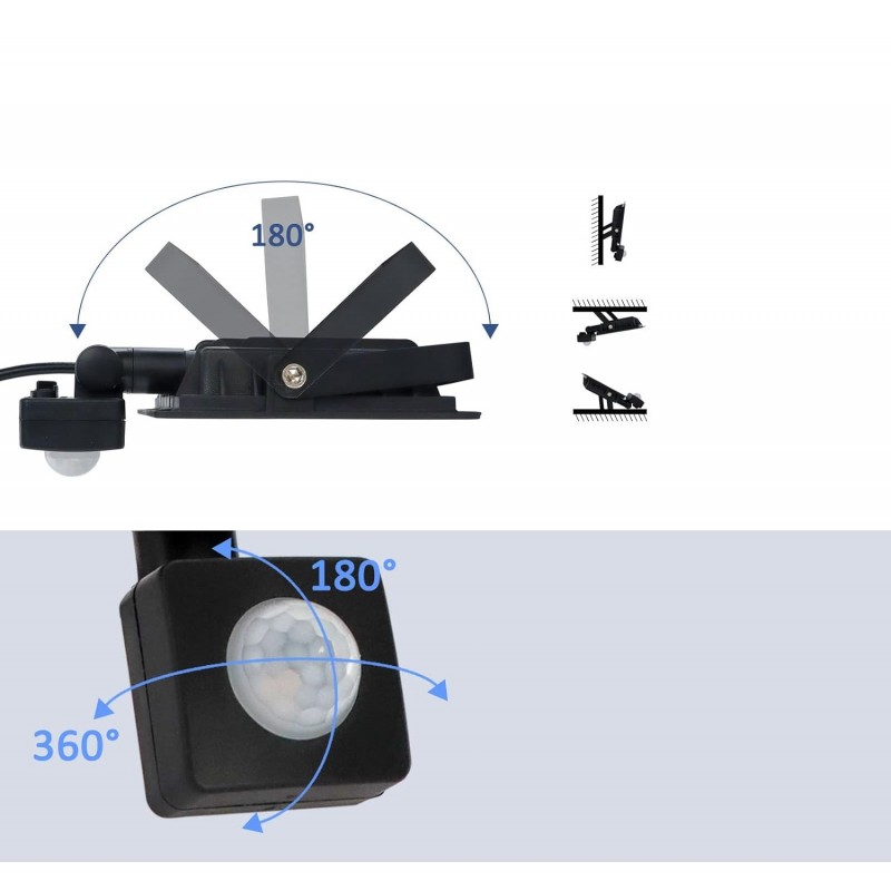 Instalação Versátil e Fácil: Acompanha parafusos de montagem e um cabo de 1m para fácil instalação. O suporte ajustável em 180° e o sensor giratório em 360° horizontal e 180° vertical permitem flexibilidade na direção da luz.