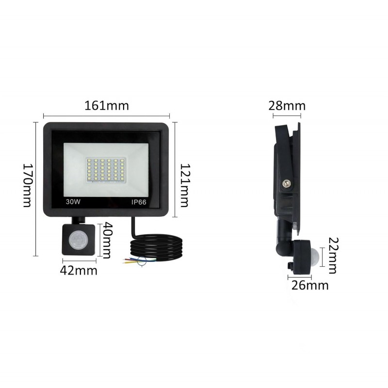 Foco LED Exterior 30W com Sensor de Movimento - Iluminação Super Brilhante 3000 LM, Branco Frio 6000K, Impermeável IP66 para Jardim e Garagem.