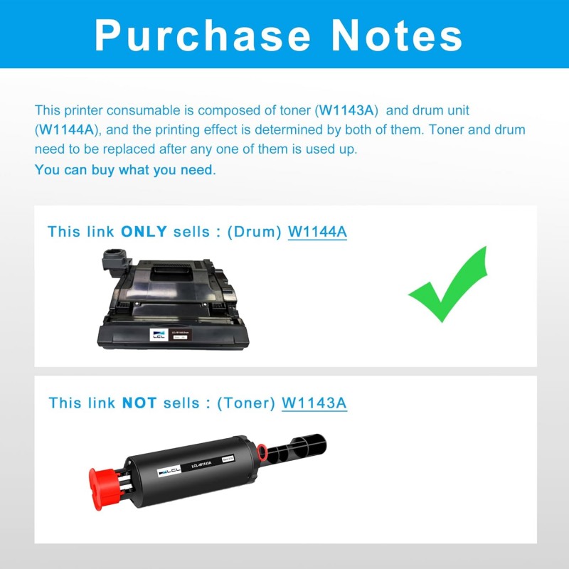 Este produto é especificamente o tambor modelo W1144A e não inclui o cartucho de toner (W1143A).