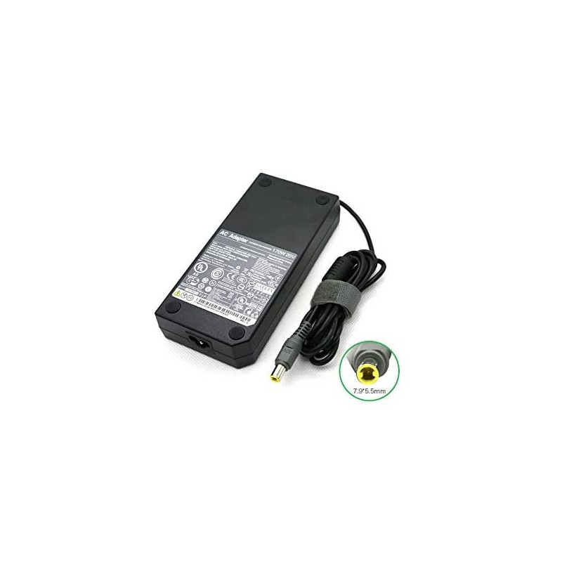 Carregador NOVO para Portátil Lenovo W520 e respectivo cabo de alimentação. Especificações: Entrada: 100-240V 50-60Hz Saída: 20V 8.5a, 170W DC Ponta do carregador: 7.9 x 5.5 (com um "pin" no interior)