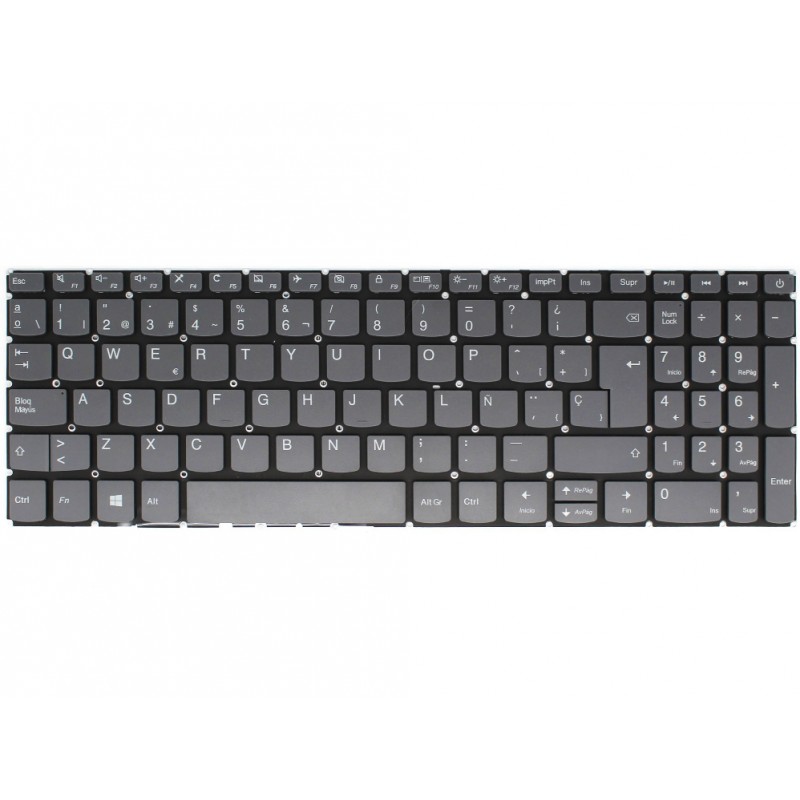 Teclado espanhol/castelhano para portátil Lenovo, modelo cinzento, sem moldura e não retroiluminado.