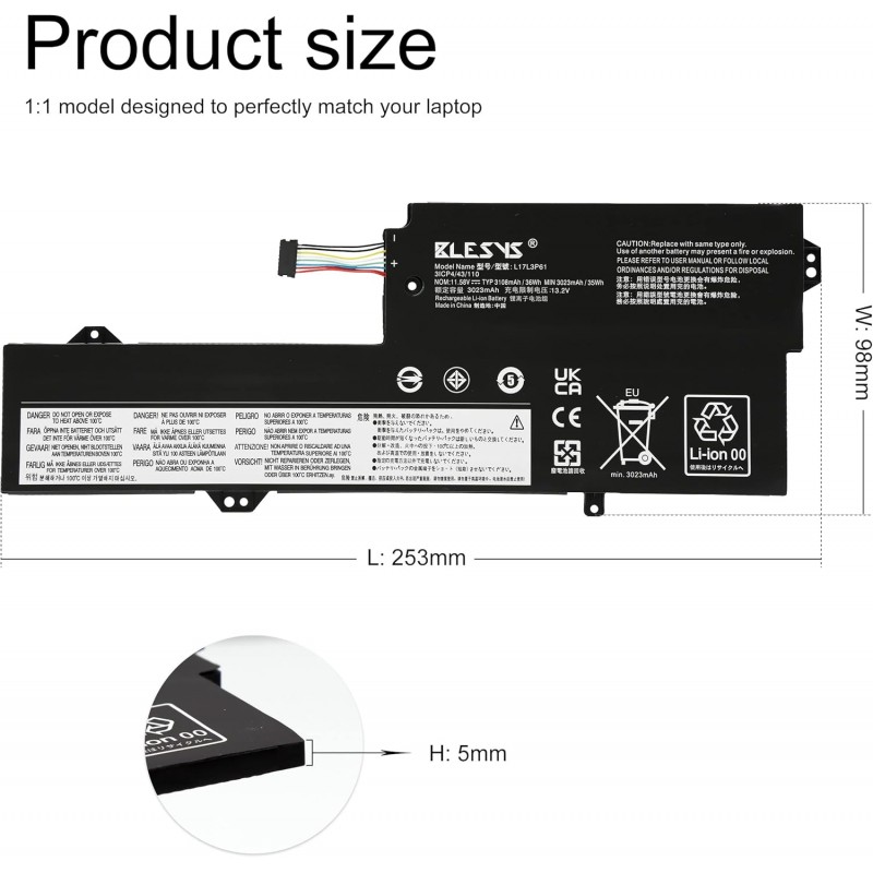 1 x Bateria de substituição Lenovo L17L3P61 11.52V 2000mAh