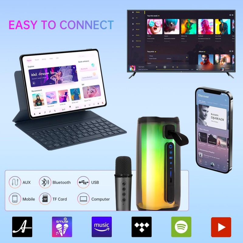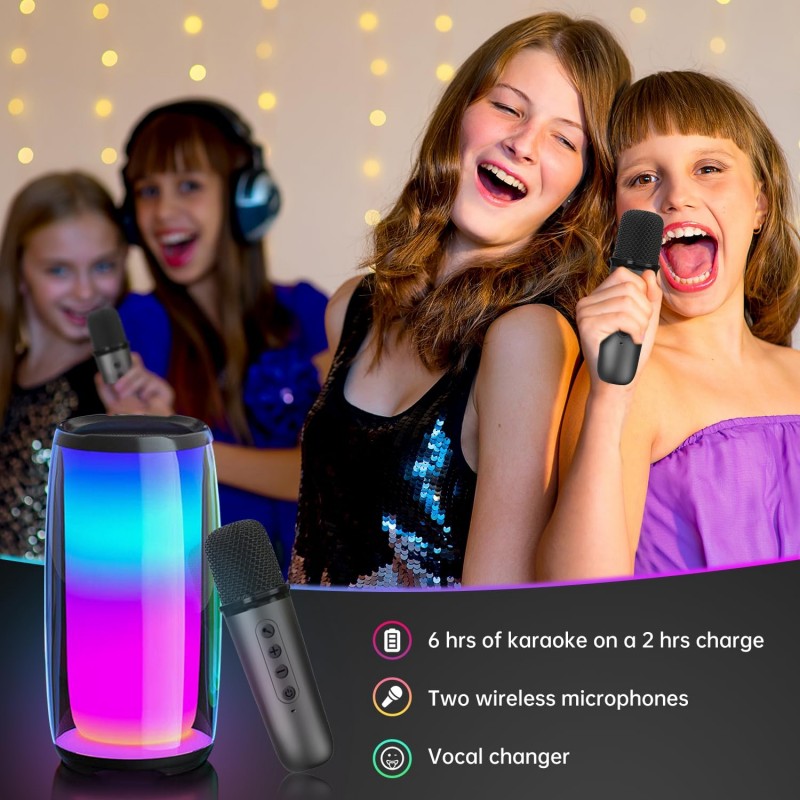 Transforme qualquer ambiente numa festa com nosso Karaoke Profissional Portátil! Equipado com 2 microfones sem fios, coluna Bluetooth e a capacidade de eliminar o som original com um clique, é perfeito para adultos e crianças.