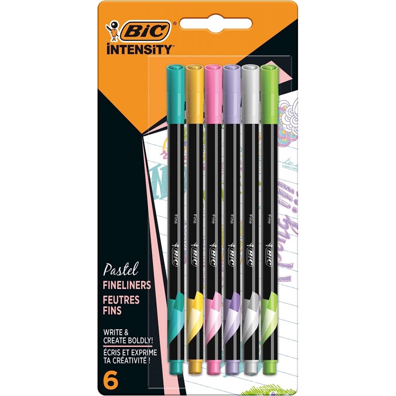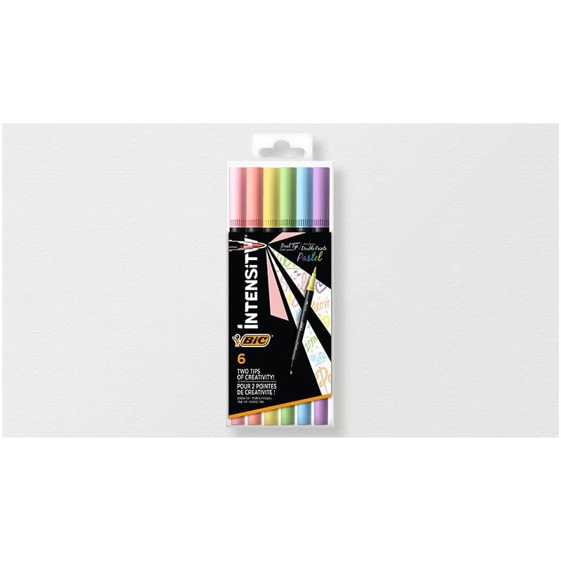 Os marcadores BIC Intensity Dual Tip Pastel oferecem uma ponta fina e uma ponta de pincel em 6 cores pastel distintas.