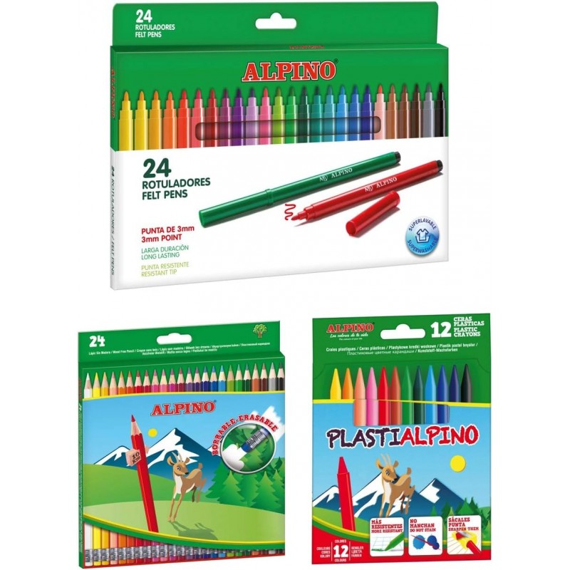 Este pacote escolar Alpino não é apenas uma excelente ferramenta para o ambiente escolar, mas também é perfeito para uso doméstico, atividades de arte e momentos de lazer.