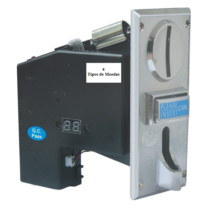 Aceita todo o tipo de moedas e tem um temporizador que desliga o equipamento após o tempo desejado.