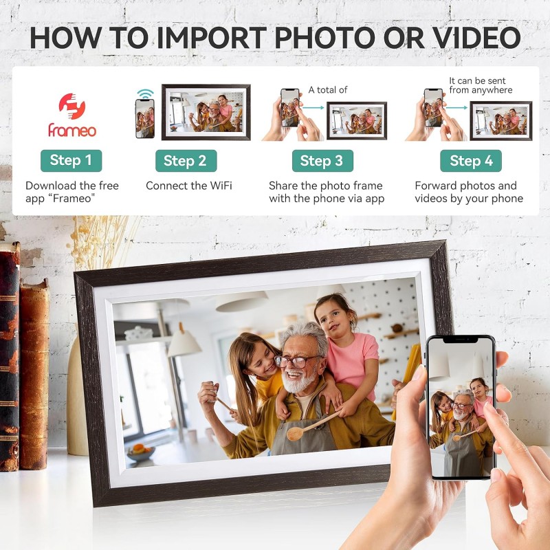 Aproveite a facilidade de ver e partilhar fotos com esta moldura digital sofisticada e de alta qualidade. Um presente que certamente trará alegria e sorrisos para quem você ama!