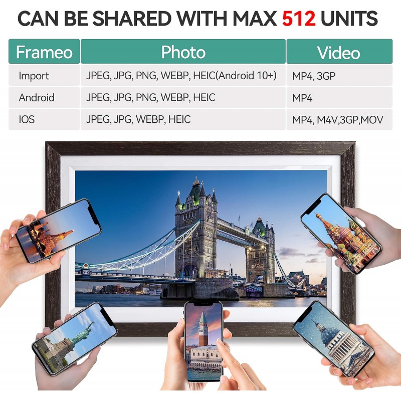 Presente para o dia dos namorados, dia da mãe/dia do pai/Natal/dia de ação de graças/ano novo. Através da aplicação frameo, pode partilhar facilmente o seu tempo feliz com a moldura digital de seus pais/amante/amigos/namorada/namorado com um só clique, dando-lhes uma surpresa inesperada!