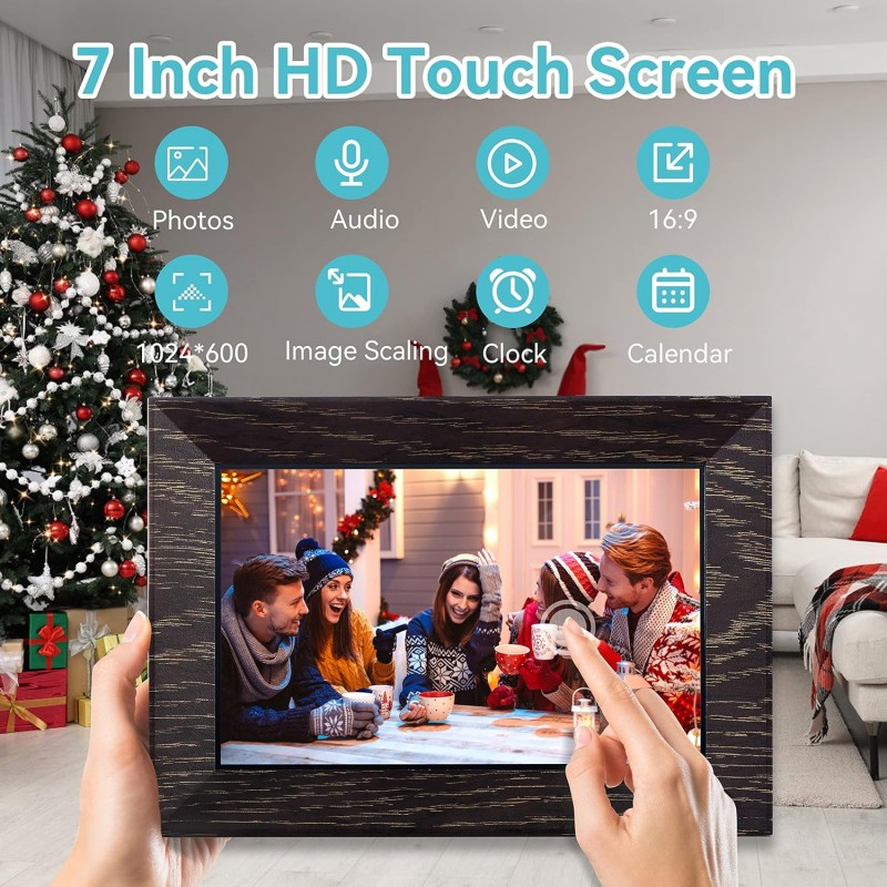 Reviva seus momentos especiais com a Moldura Digital Wi-Fi de 7 polegadas. Com resolução de 1024 x 600 IPS e ecrã táctil, esta moldura permite partilhar e visualizar suas fotos favoritas facilmente via Wi-Fi. Perfeita para presentear ou manter seus entes queridos sempre por perto!