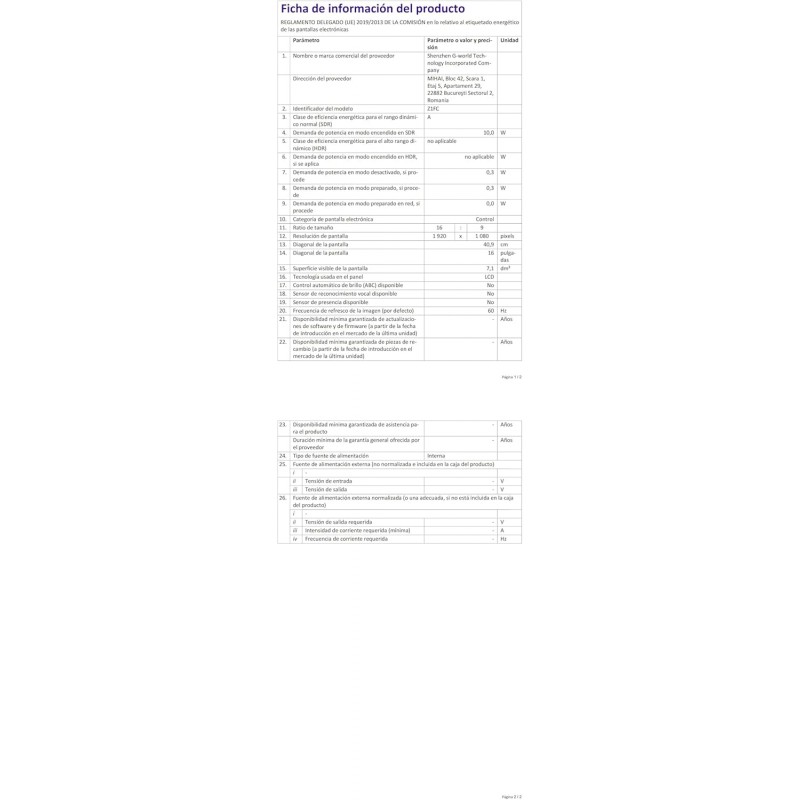 1 x Monitor portátil ARZOPA 16,1 polegadas
