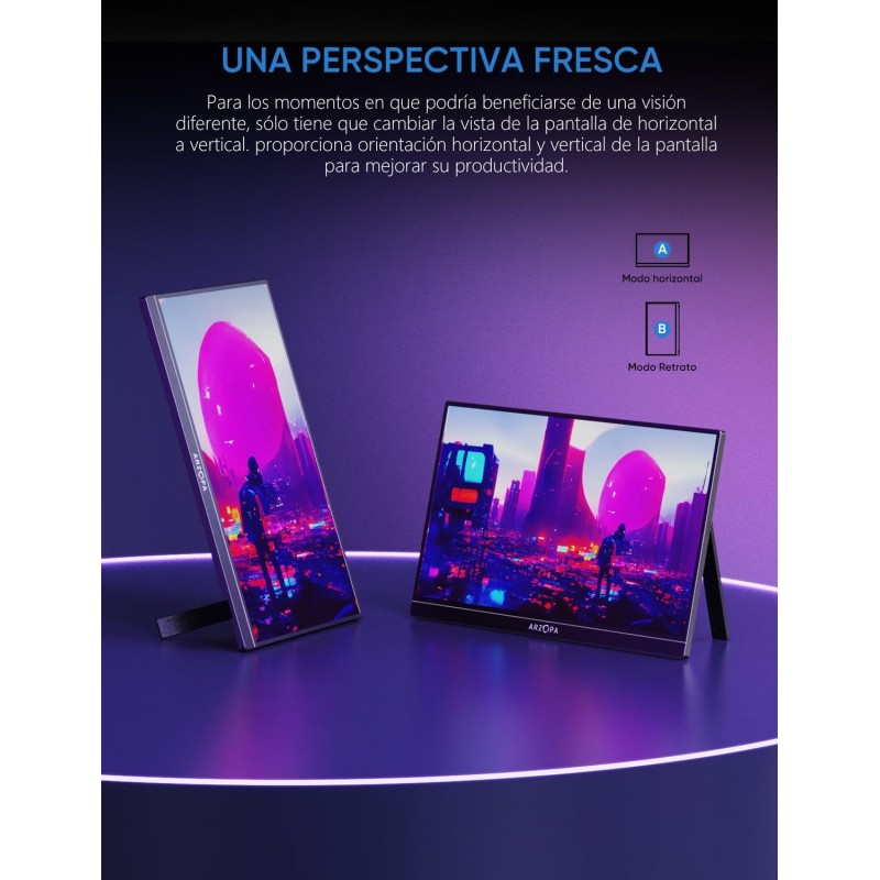 O monitor portátil ARZOPA de 16,1 polegadas foi concebido para oferecer desempenho de alto nível, tanto em jogos como em produtividade. Com resolução FHD 1080P e tecnologia IPS, proporciona cores vivas e detalhes nítidos, cobrindo 100 por cento da gama sRGB. A taxa de atualização de 144Hz garante fluidez nas imagens, perfeita para jogos e conteúdos de ação rápida.