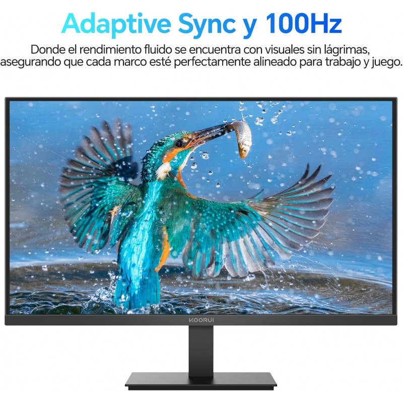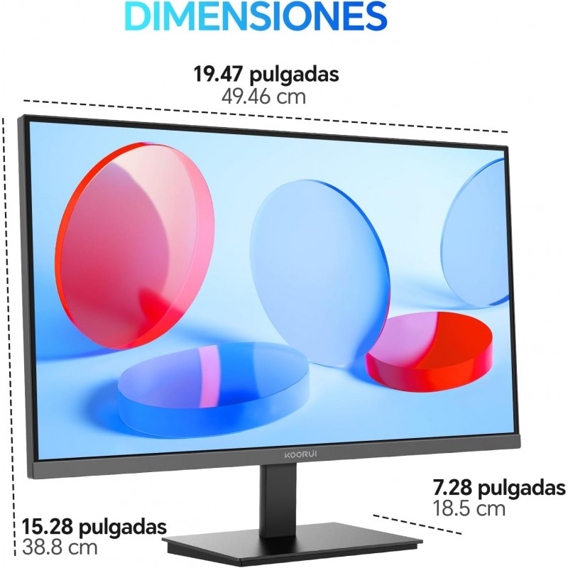 Monitor KOORUI de 21.45 polegadas com resolução Full HD 1920x1080, taxa de atualização de 100Hz e tecnologia VA com 5ms de tempo de resposta. Ideal para jogos leves, edição multimédia e trabalho prolongado, com inclinação ajustável e suporte VESA.