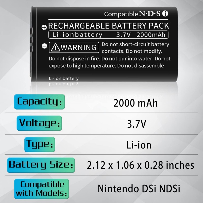 Este kit inclui uma bateria recarregável de iões de lítio de 2000 mAh e uma mini ferramenta, projetado especificamente para o Nintendo DSi. É a solução ideal para substituir a bateria original do seu dispositivo, garantindo maior autonomia e facilidade de instalação.