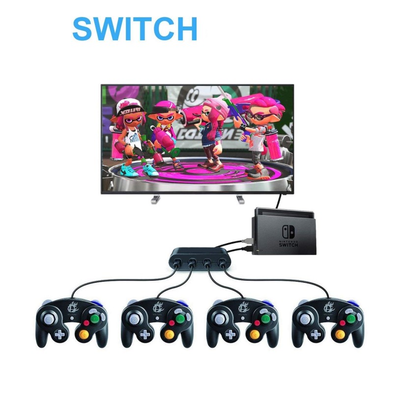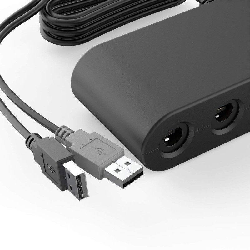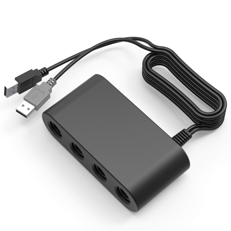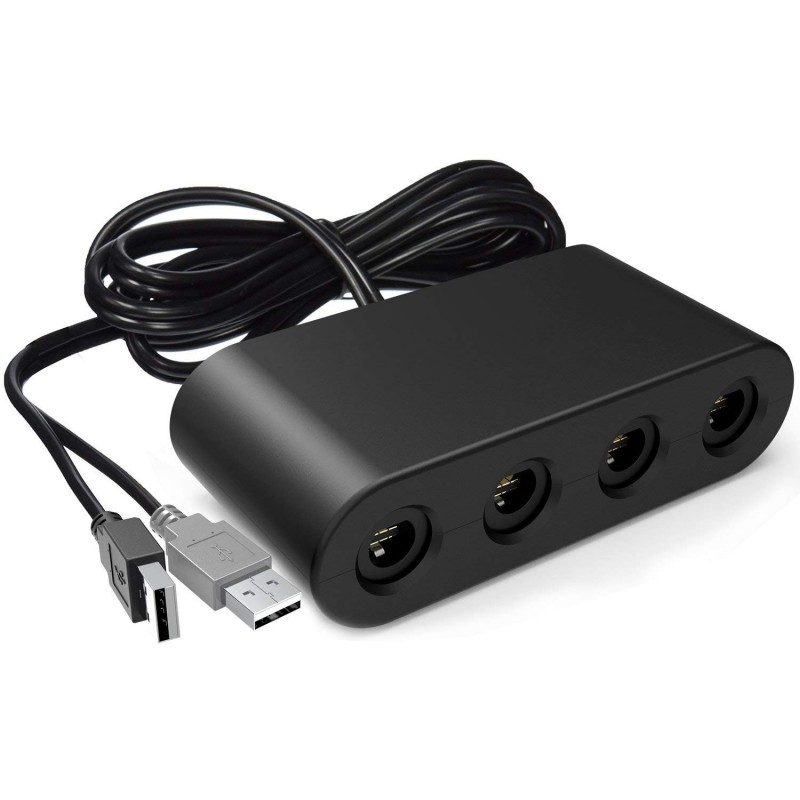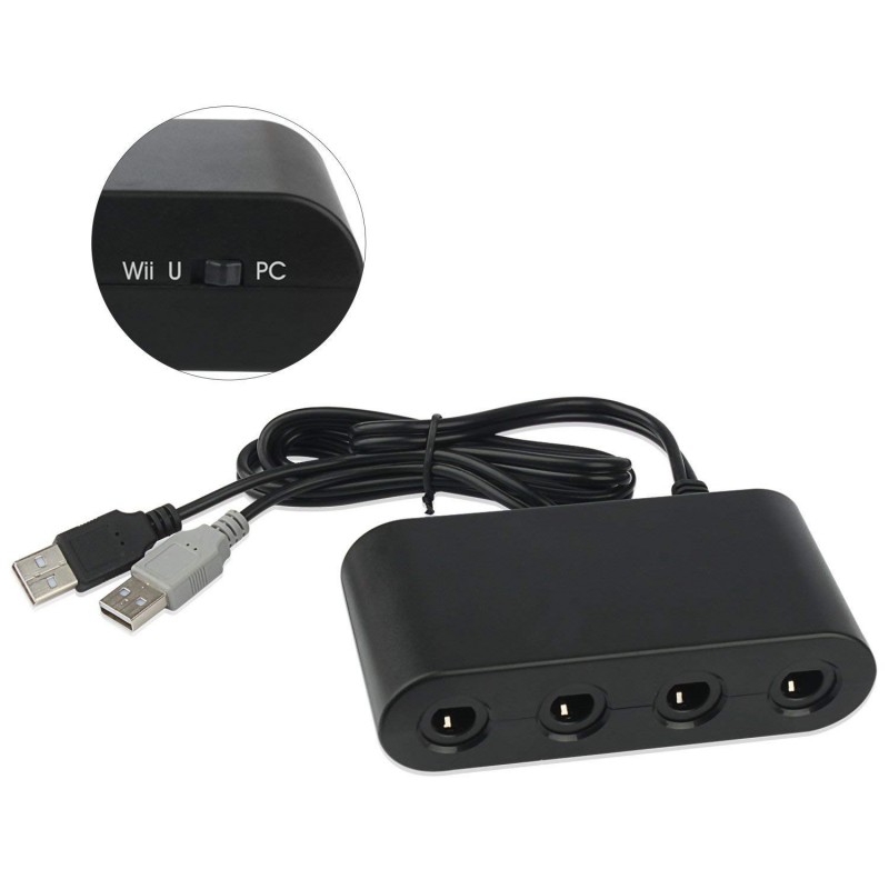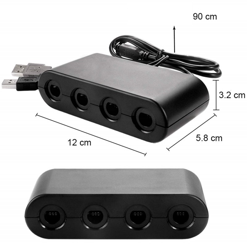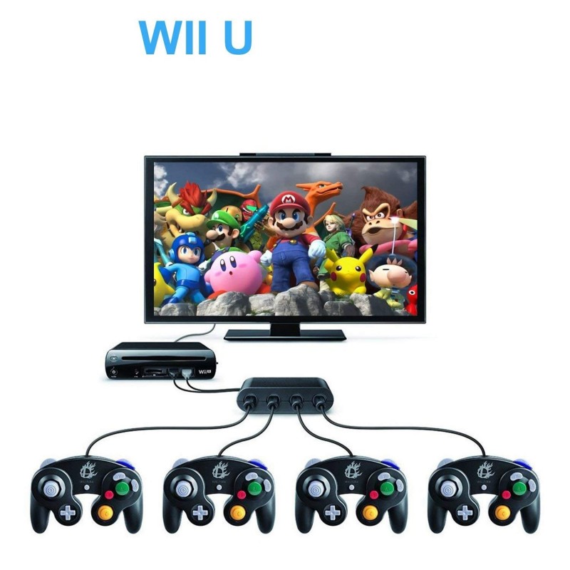 Este adaptador de controlador GameCube permite configurar até quatro jogadores originais com seus controladores com fio Nintendo GameCube existentes e controladores sem fio wavebird para seus jogos Smash Bros