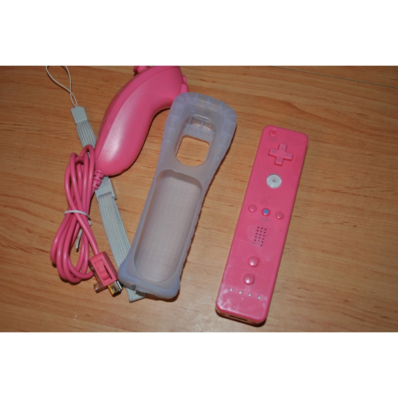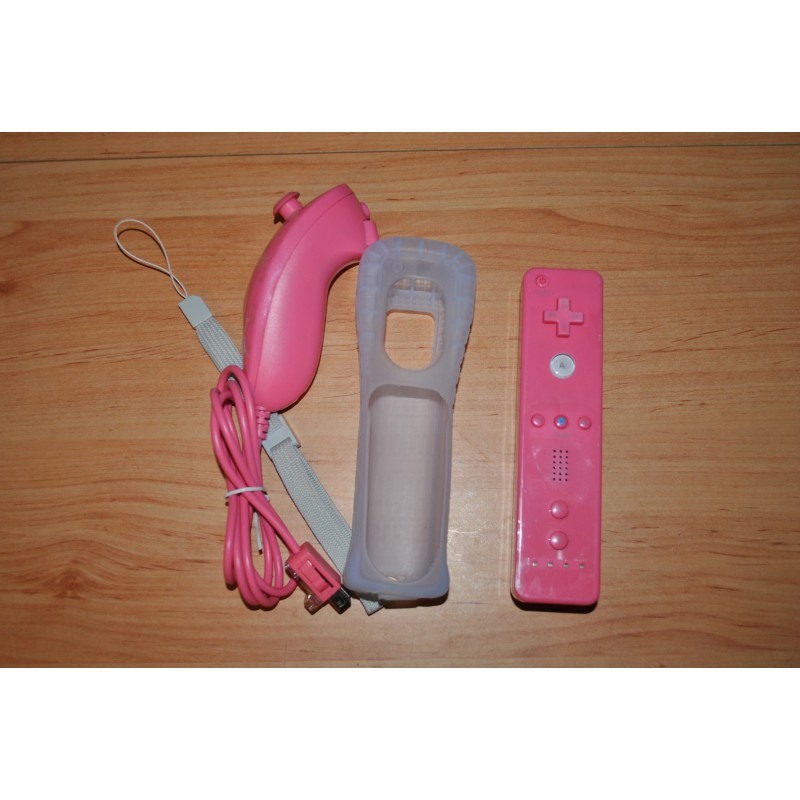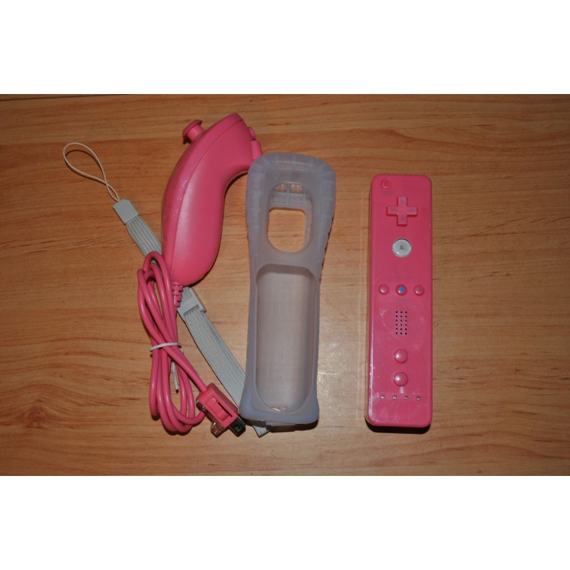 Comando Wii Cor-de-rosa + Nunchuk Comando para a Wii completamente novo, mais o Nunchuk, a capa protectora de silicone e a fita de pulso. As pilhas estão incluídas.