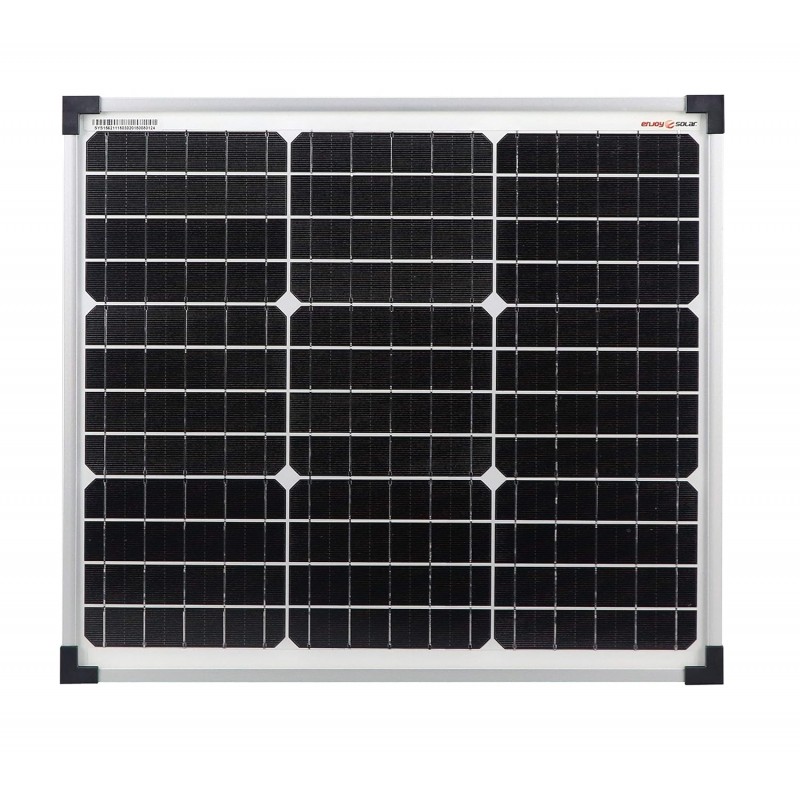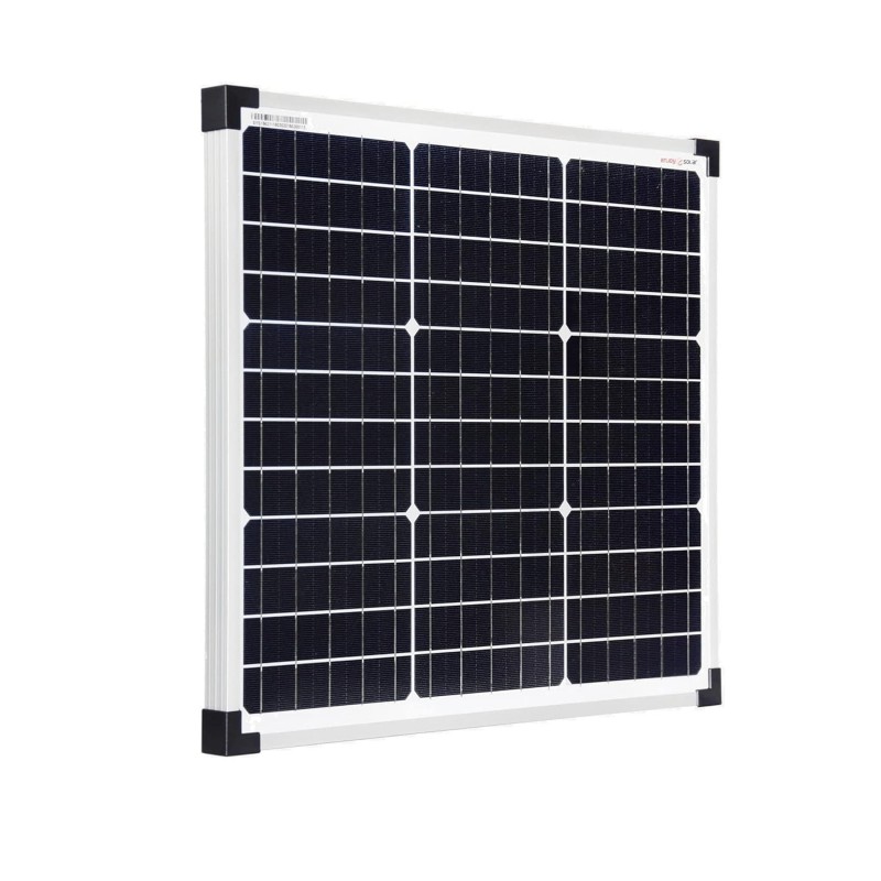 Painel solar monocristalino de 30W e 12V, com alta eficiência, vidro temperado resistente e moldura em alumínio anodizado. Ideal para autocaravanas, casas de jardim e barcos.