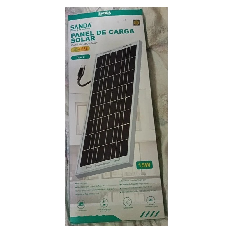O Painel Solar SANDA SD-6058 é a solução prática e ecológica para carregar os seus dispositivos de forma autónoma e sustentável. Com potência de 15W e saída através de cabo USB-C, garante carregamentos rápidos e seguros em qualquer lugar.
