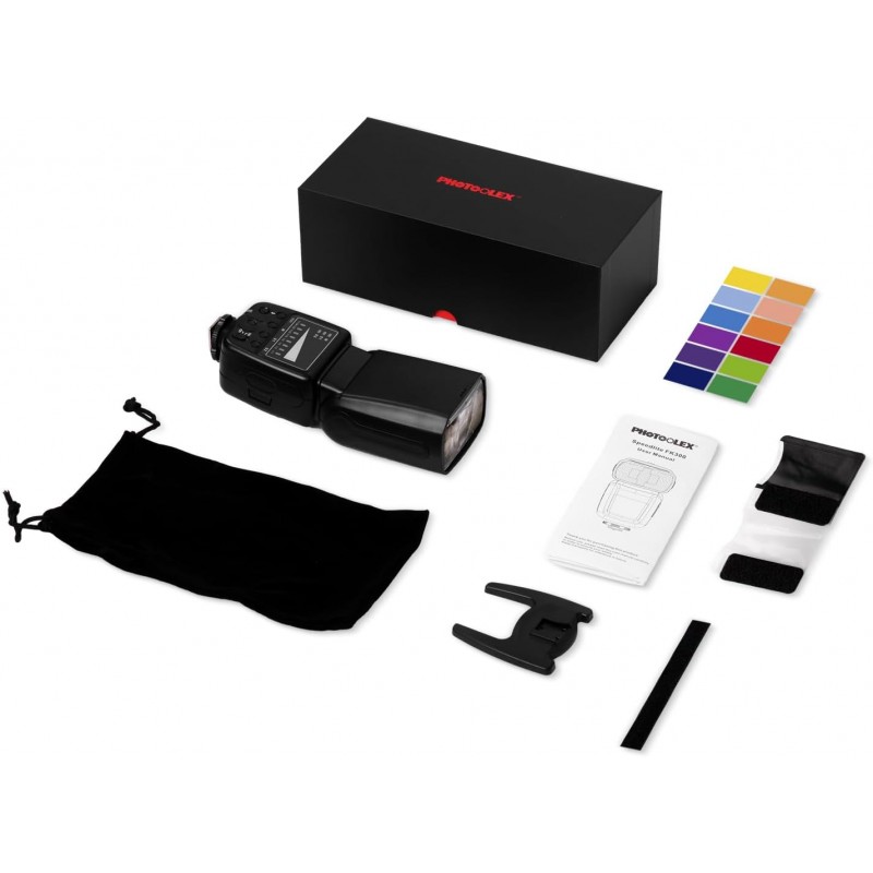 O Flash Speedlite Photoolex FK300 é um acessório fotográfico potente, equipado com tubos de alta qualidade e elevada condutividade elétrica. Possui número guia GN33 (ISO100, 35 mm), oferecendo iluminação estável e de alta intensidade. A cabeça de flash foi concebida para emitir luz uniformemente, garantindo resultados profissionais.