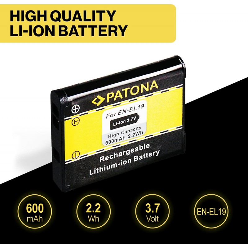 1 x Bateria EN-EL19 Li-ion recarregável, 600 mAh